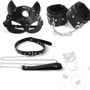 • 1 juego de máscara de gato negro con collar de remaches ajustables con vendas de cuero 22,00 €