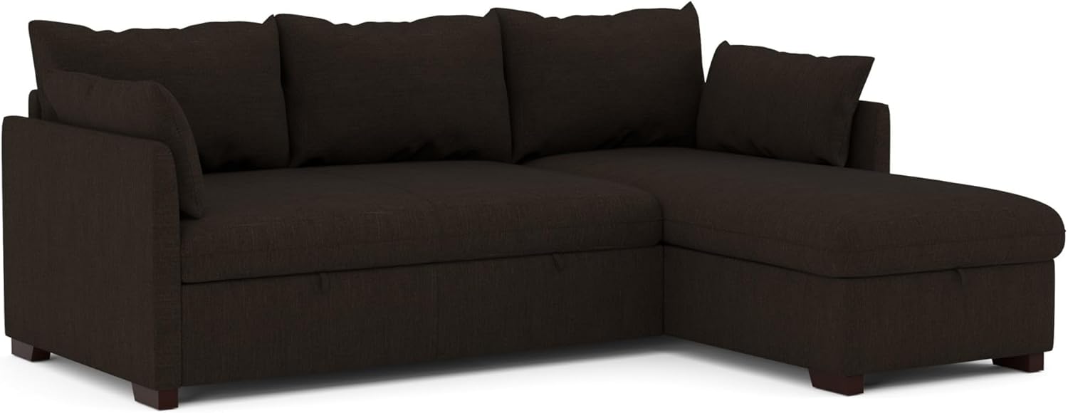 BUDWING Orlando, Sofá Cama Esquinero Marrón – 4 plazas – Chaise Longue Reversible, Arcón de Almacenaje, Dos Cojines Sueltos – Estilo Contemporáneo – 221cm (Ancho) x 160.5cm (Fondo) x 88cm (Alto)